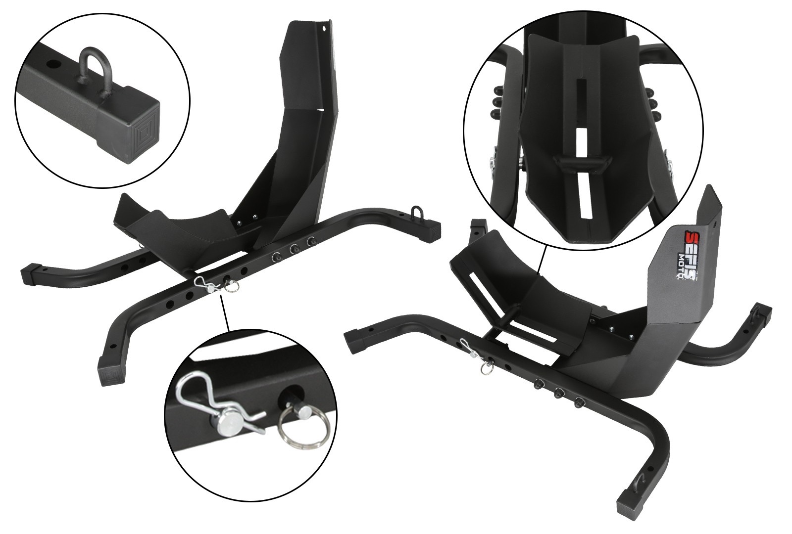 Dank des Sicherungsstifts müssen Sie sich keine Sorgen machen, dass sich die Halterung, die das Motorradrad sichert, beim Transport oder Abstellen lösen könnte. Durch einfaches Einstecken eines Stiftes können Sie diesen schnell und einfach verriegeln und so das Motorrad gegen unbeabsichtigtes Entfernen vom Ständer sichern. Der Stift ist außerdem mit einem Ring zum leichteren Einführen und Herausnehmen ausgestattet.
