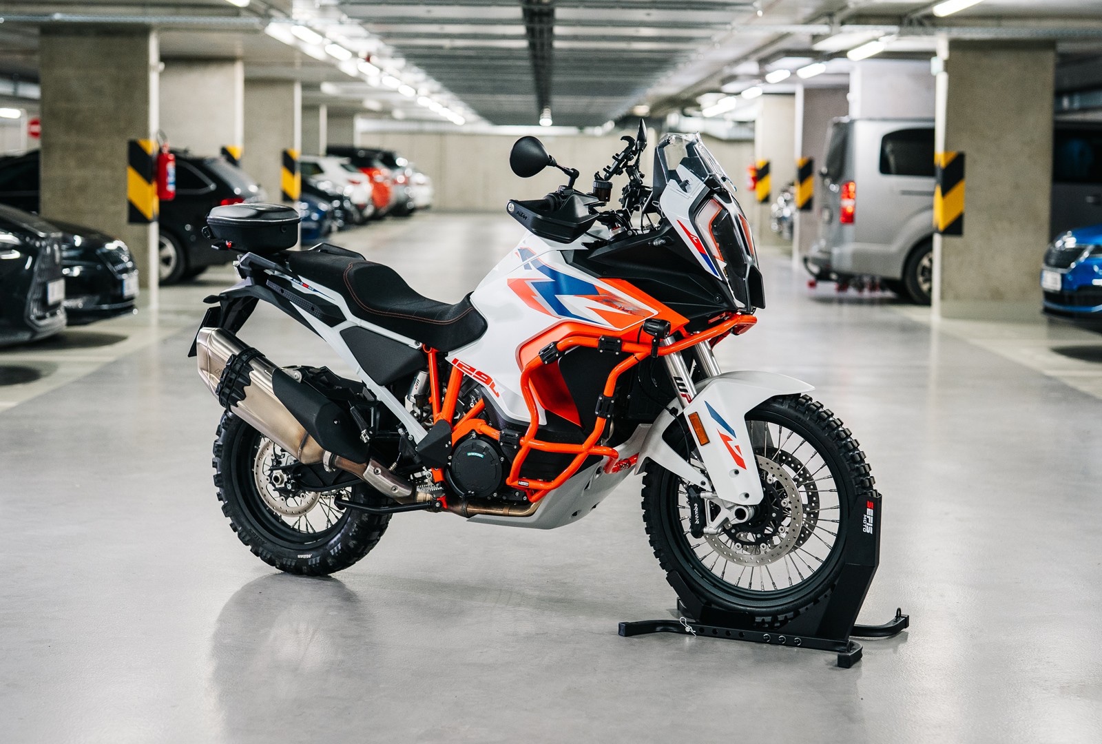 Vier 10-Millimeter-Löcher dienen zur Verankerung des Ständers am Boden eines Transporters, Anhängers oder einer Garage. Die Verankerung des Ständers garantiert nicht nur die perfekte Stabilität und Sicherheit Ihres Motorrads beim Transport, sondern ermöglicht Ihnen auch die Verwendung eines Ösenpaares mit einem Innenmaß von 20 Millimetern zum Spannen der Transportgurte und zur Fixierung des Motorrads direkt am Ständer. Zur Nutzung ist eine feste Verankerung des Ständers notwendig, bei unverankertem Ständer das Motorrad immer an den dafür vorgesehenen Stellen im Fahrzeuginnenraum befestigen.