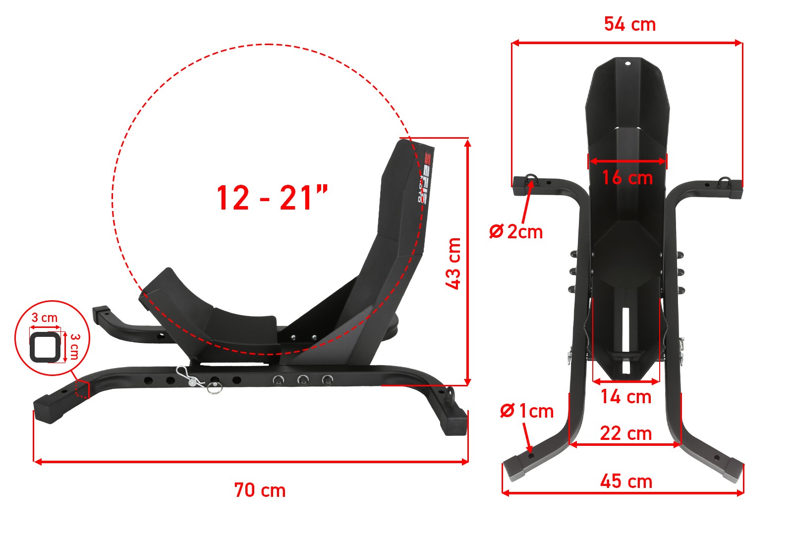 Vollständig einstellbar für 12-21” Räder