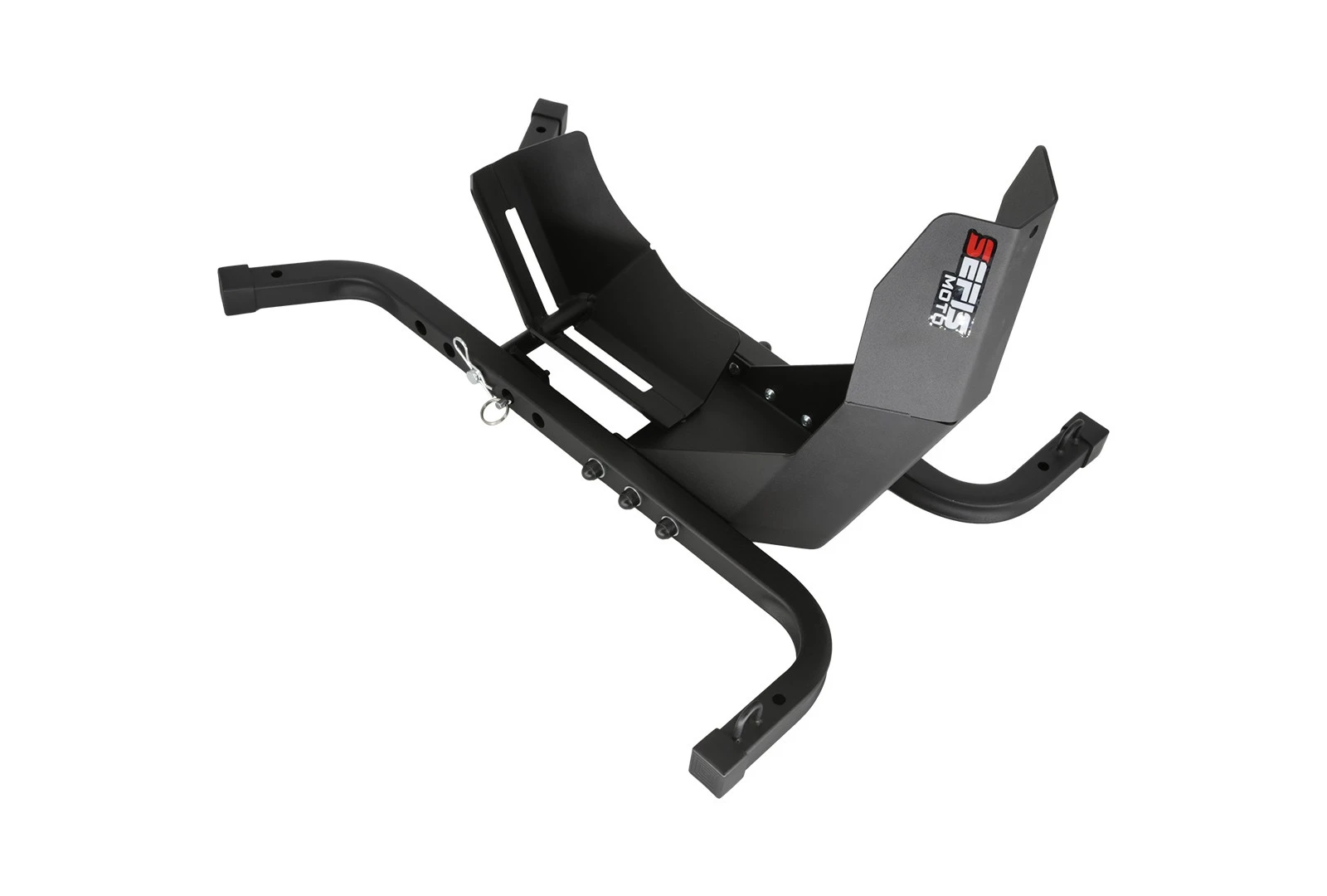 Dank des Sicherungsstifts müssen Sie sich keine Sorgen machen, dass sich die Halterung, die das Motorradrad sichert, beim Transport oder Abstellen lösen könnte. Durch einfaches Einstecken eines Stiftes können Sie diesen schnell und einfach verriegeln und so das Motorrad gegen unbeabsichtigtes Entfernen vom Ständer sichern. Der Stift ist außerdem mit einem Ring zum leichteren Einführen und Herausnehmen ausgestattet.